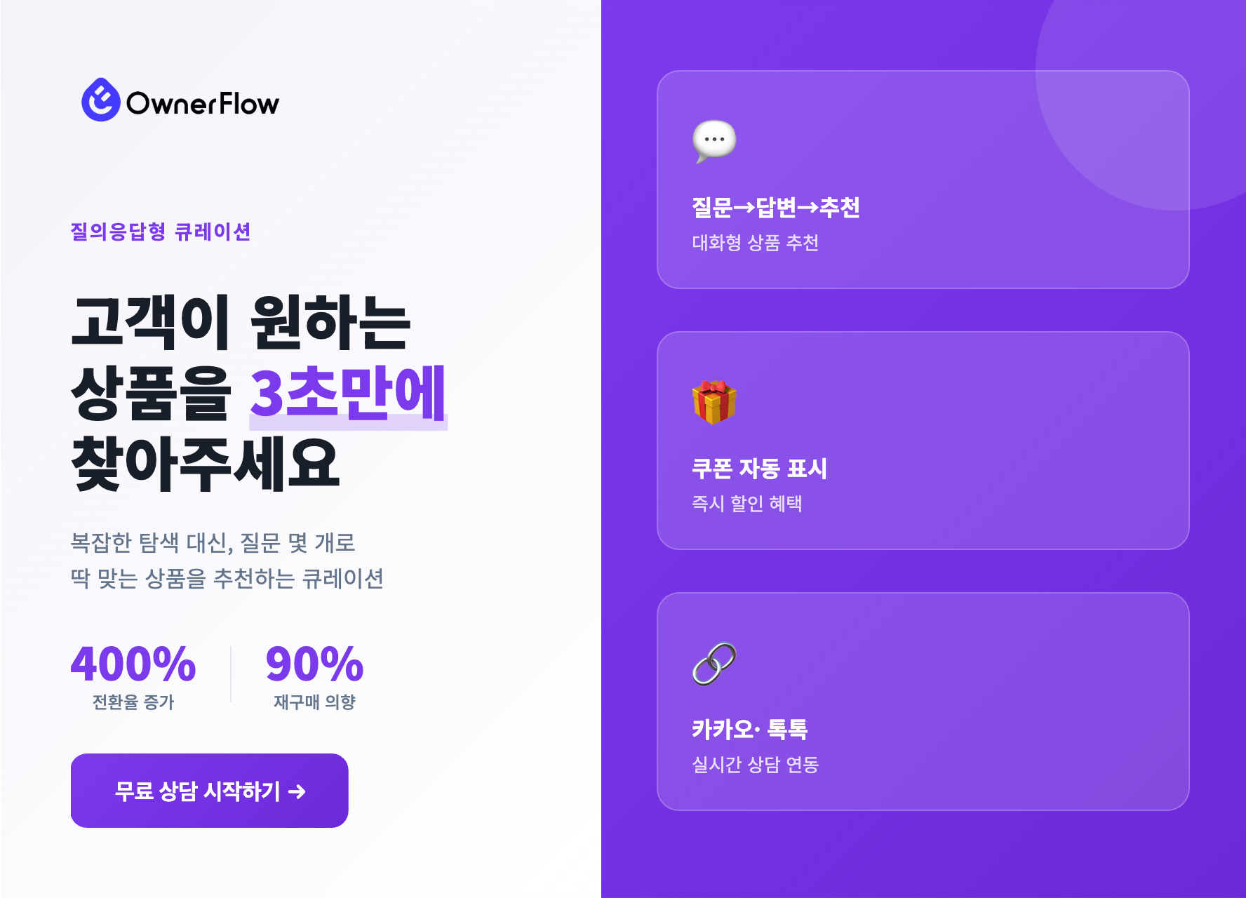 질문 몇 번이면 선택은 끝. 고객은 고민 없이 고르고, 구매는 자연스럽게 이어집니다. ⚡️