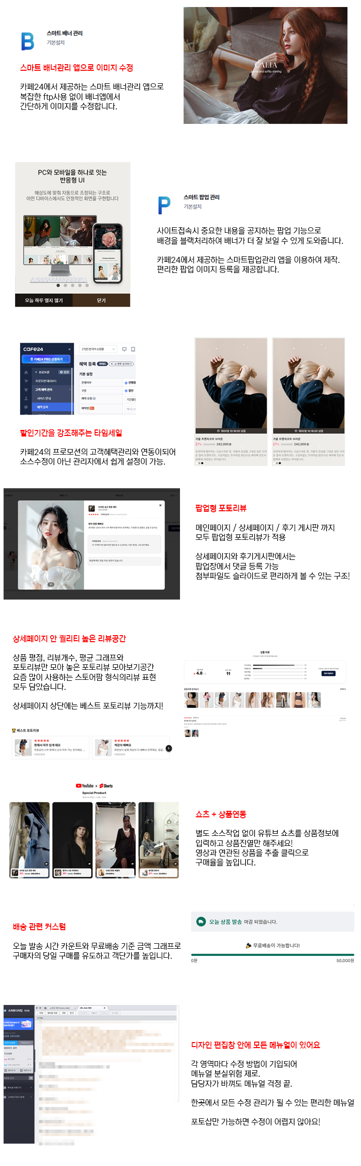- 완벽 반응형은 물론 - 타임세일, 무료배송, 타임세일, 포토리뷰, 쇼츠+상품연동 은 기본!